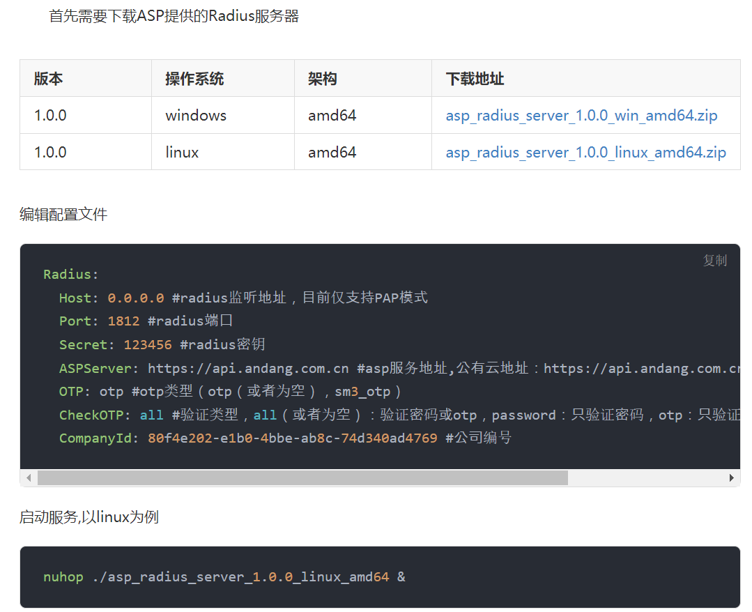 首先需要安装Radius服务器,该服务器可以用于验证用户的身份并生成一次性密码。可以根据实际情况选择不同的Radius服务器软件,例如安当ASP身份认证平台。
